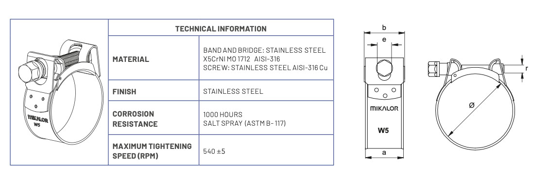 Mikalor W5 Supra Premium 316 Marine Grade Stainless Steel Heavy-Duty Clamp